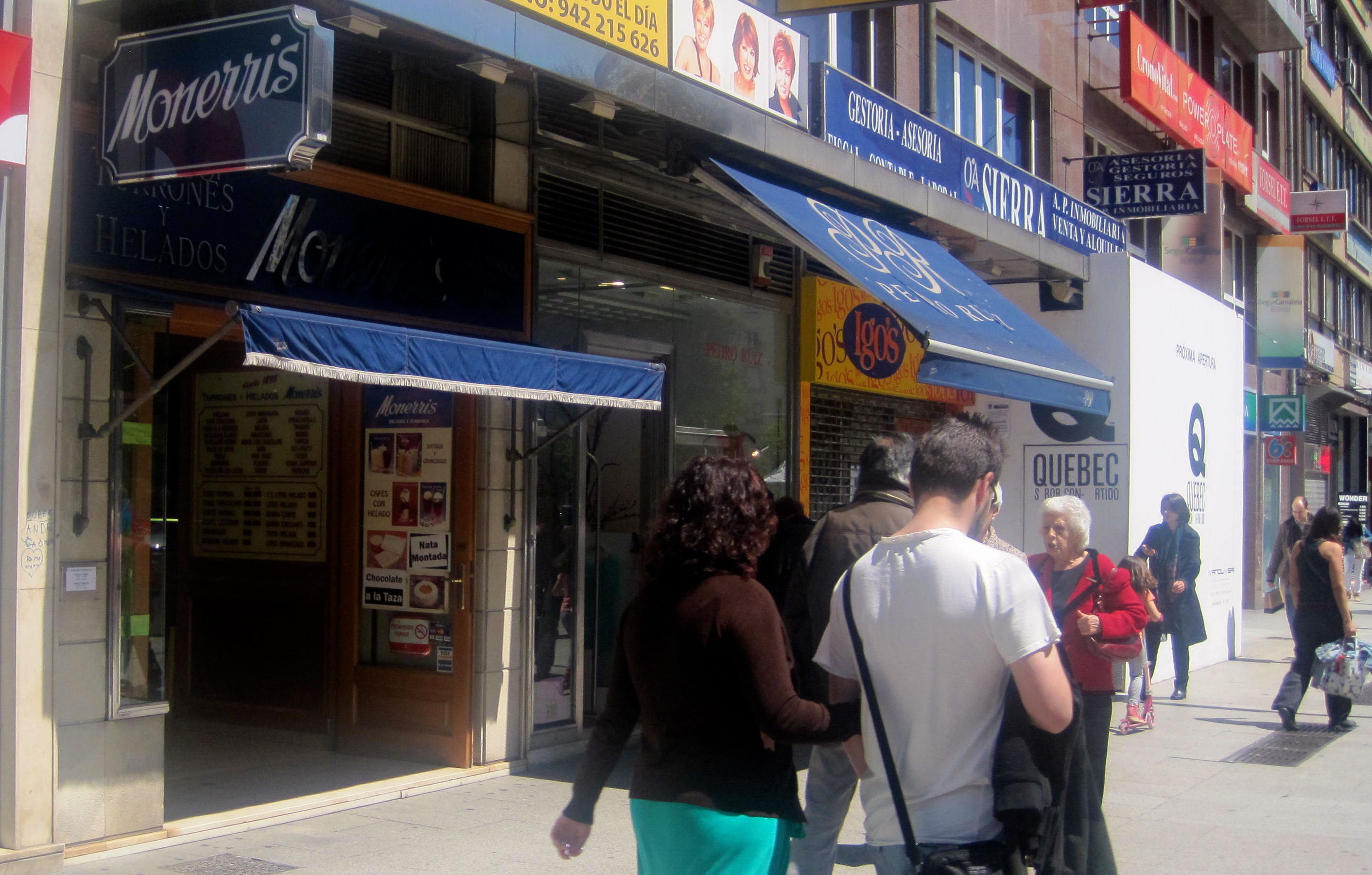 My favourite ice-cream (and therefore my first stop) is the tiramisu single scoop in a cone from Monerris. The company began its trade selling turrones or Spanish traditional nougat in Santander in the winter of 1893. Four generations later, the family continues to make the  Christmas marzipans and nougat by hand. But given the seasonality of that trade, they hit on the perfect combination (for me) of producing ice-cream in Cantabria for the summer months. There are a few tables at the back of the parlour where you can order a sit-in ice-cream. I usually take mine and walk though the pedestrianised street of San Francisco onto the Plaza Porticada. My single scoop of tiramisu in a cone (also delicious) cost 2EUR.