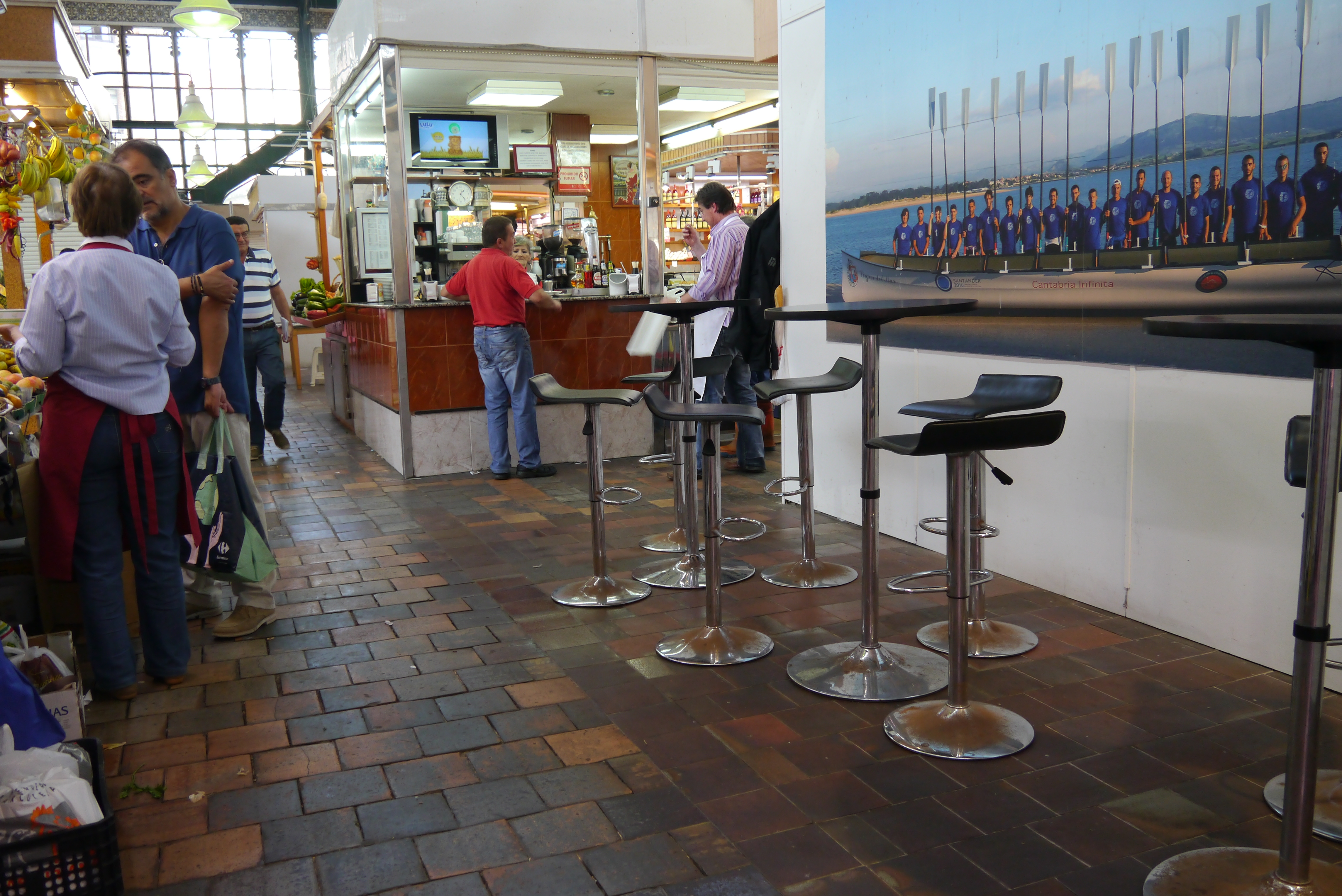 For a long time I was drawn by the variety and freshness of the fish and only went downstairs. I was also dreading what might be a stenchy meat section on top. But the pull of the cheeses on the top floor were hard to resist. And now I prefer to wander there because you get to admire the structure properly. (It’s kind of dark down in the fish section.) And of course, in case you needed another reason apart from the daylight – there is a bar up top – keen eyes will notice the photo of the Ciudad de Santander rowing team. [I will fill you in on this revived interest of mine sometime later this year.]