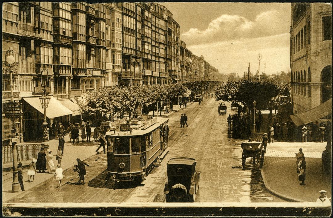 Don’t the trams look brilliant? This is on a stretch that is now called Calvo Sotelo. You can just make out the post office on the right. La Ribera, Santander. Photographer: Fuertes A. Taken 1926-1935. Victor del Campo Cruz. © Centro de Documentación de la Imagen de Santander. Ayuntamiento de Santander
