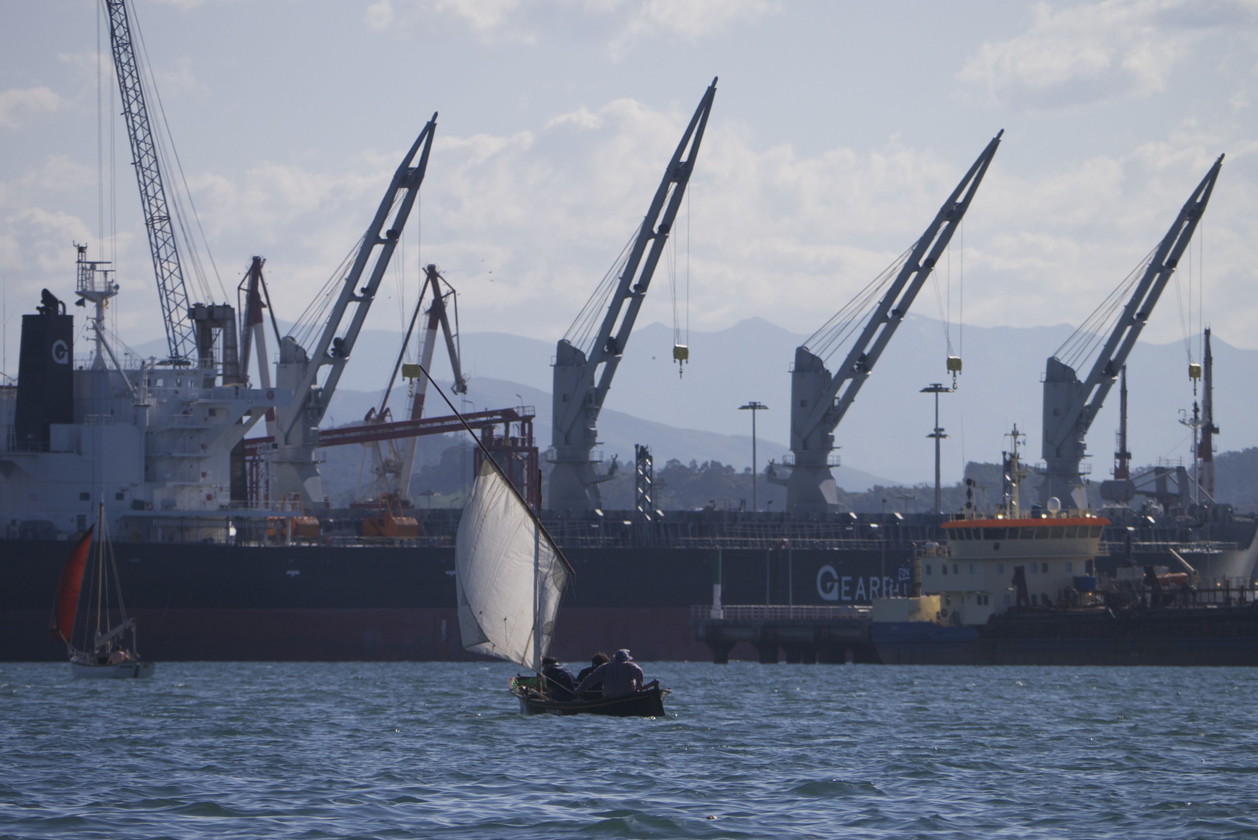 I’m starting to think I must be obsessed with cranes. I like the delicacy of the translucent sail here against the hard lines of the towering cranes