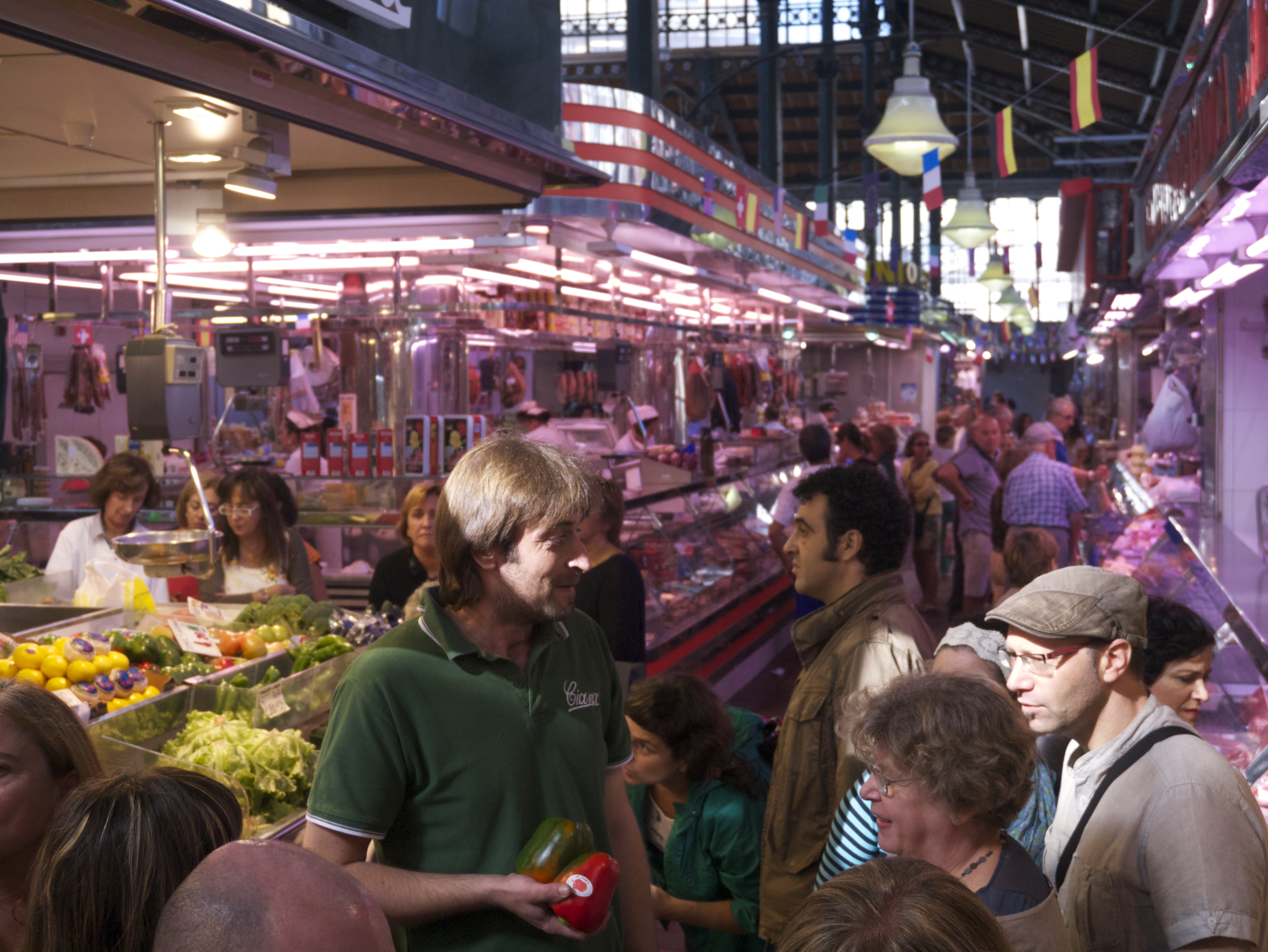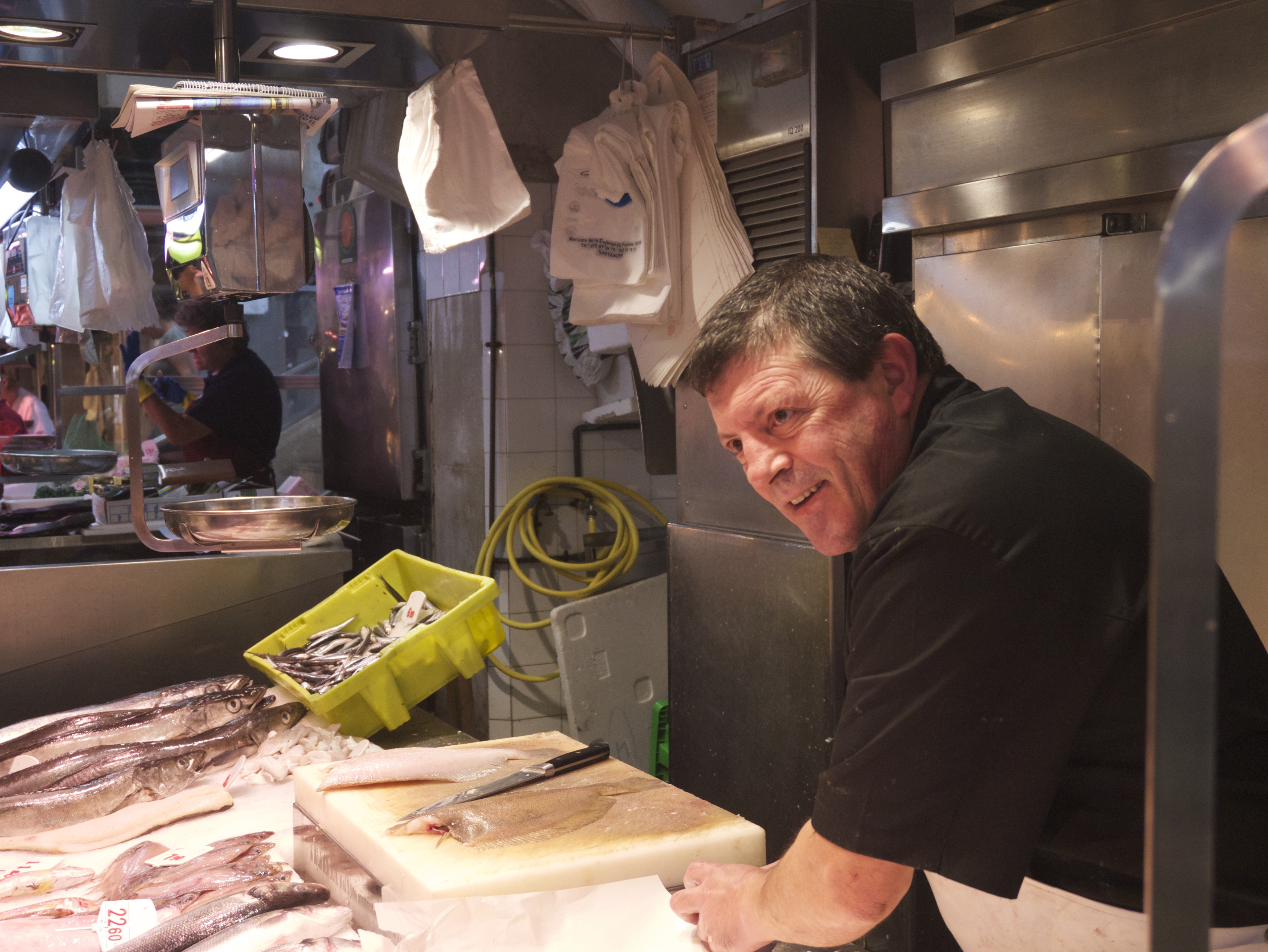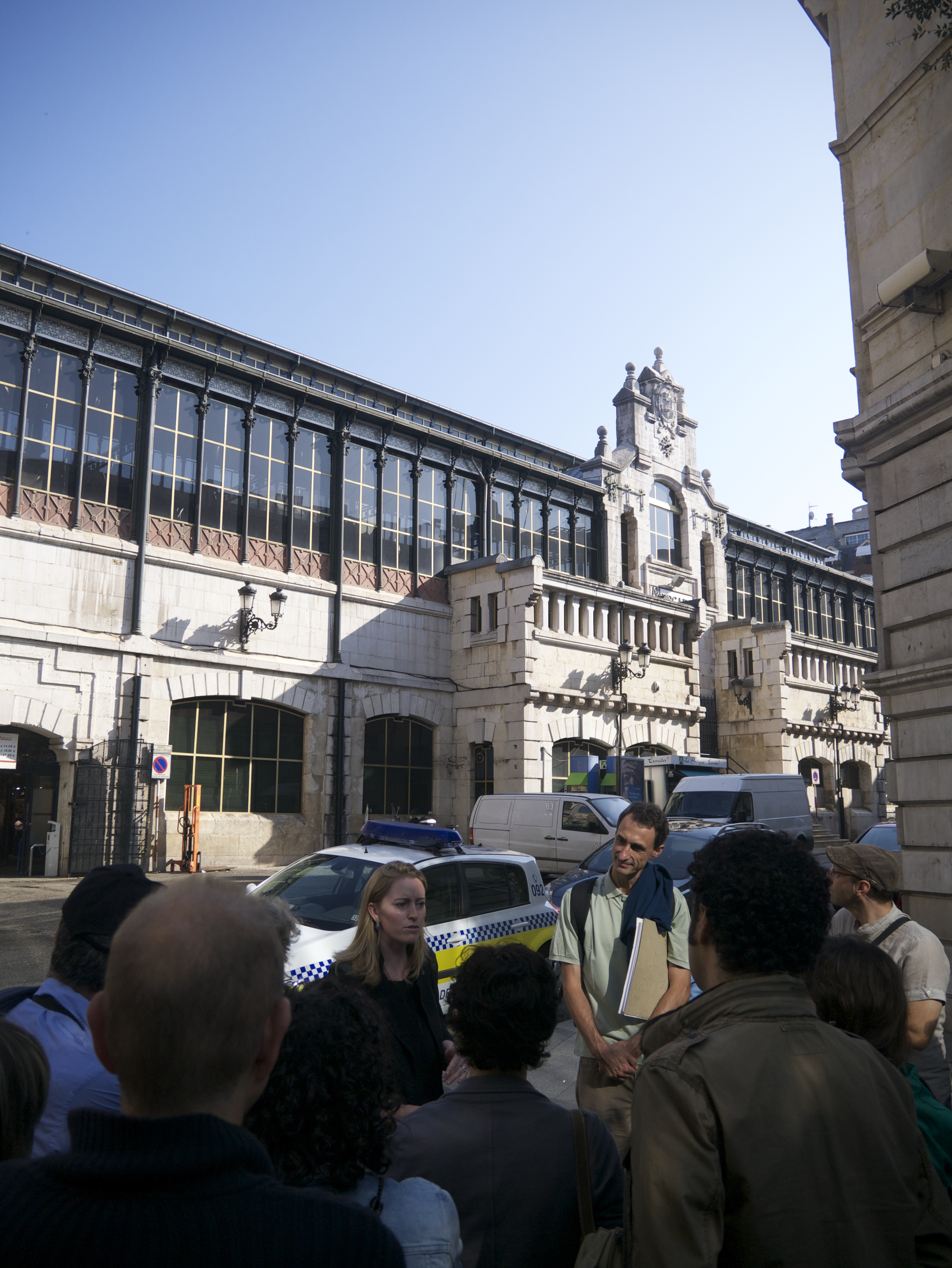 My primary concern in the market was not to loose anybody and that I achieved. My main objective was to open up dialogue between the visiting group and the stall owners. And that was also very successful. I knew it would be tricky to manoevre the market with a large group on the busiest day of the week but the charisma and warmth of people such as Marta (on the Traders Committee) in the fish market made us feel like VIPS. Of course, we did have market royalty in our group – Begona – the president of the Ribera foodmarket in Bilbao was there and it was a joy to see her and Marta meet each other. I’m glad Marta is travelling to the Ribera Market in Bilbao tomorrow as I know she’ll enjoy meeting Begona again and meeting more of the stallowners in Bilbao. Marta is looking to arrange an exchange trip for the traders of both markets and is suggesting dates which are holidays in one region but not in the other – which is a great idea. I hope tomorrow kick-starts the process.