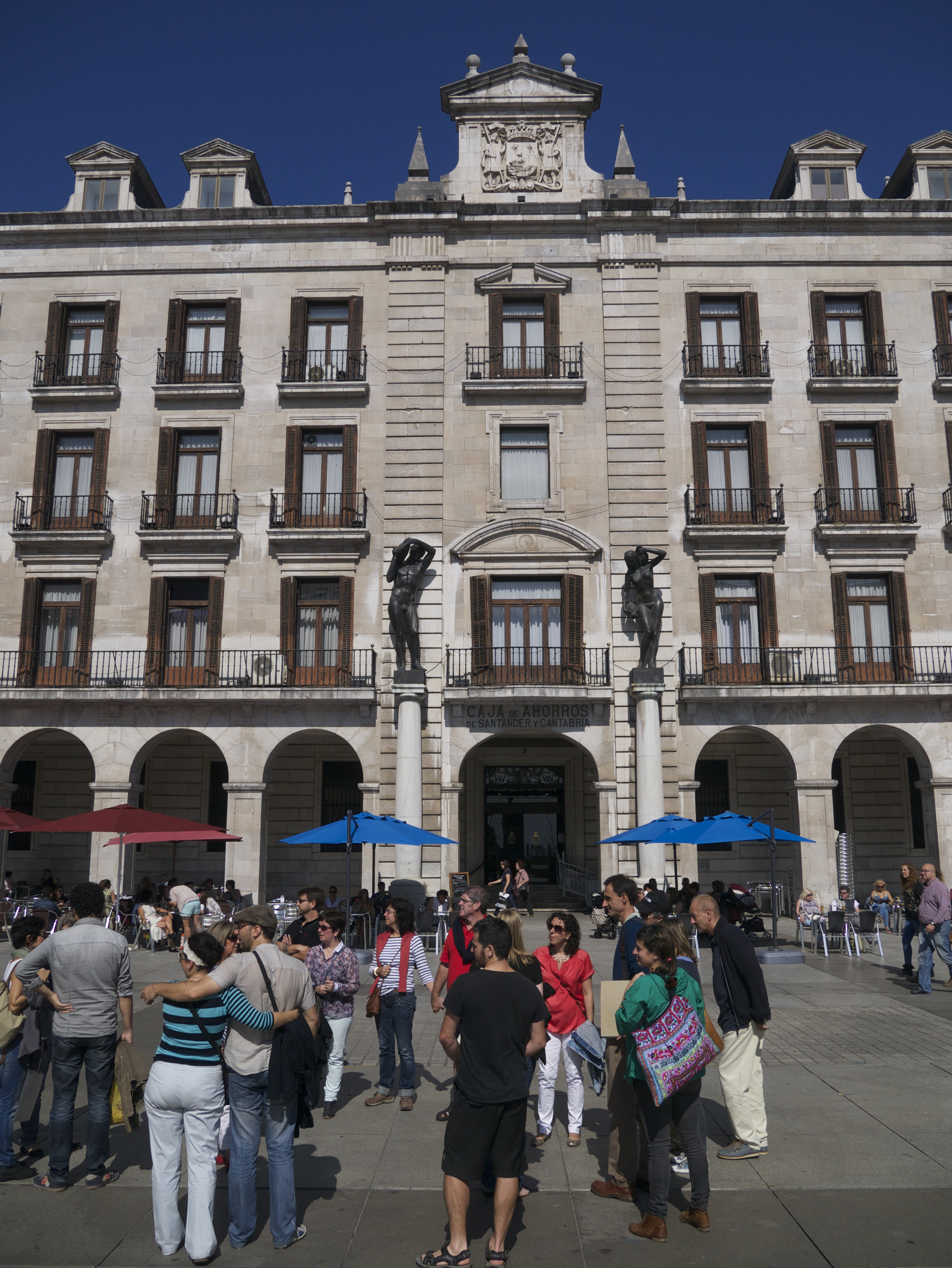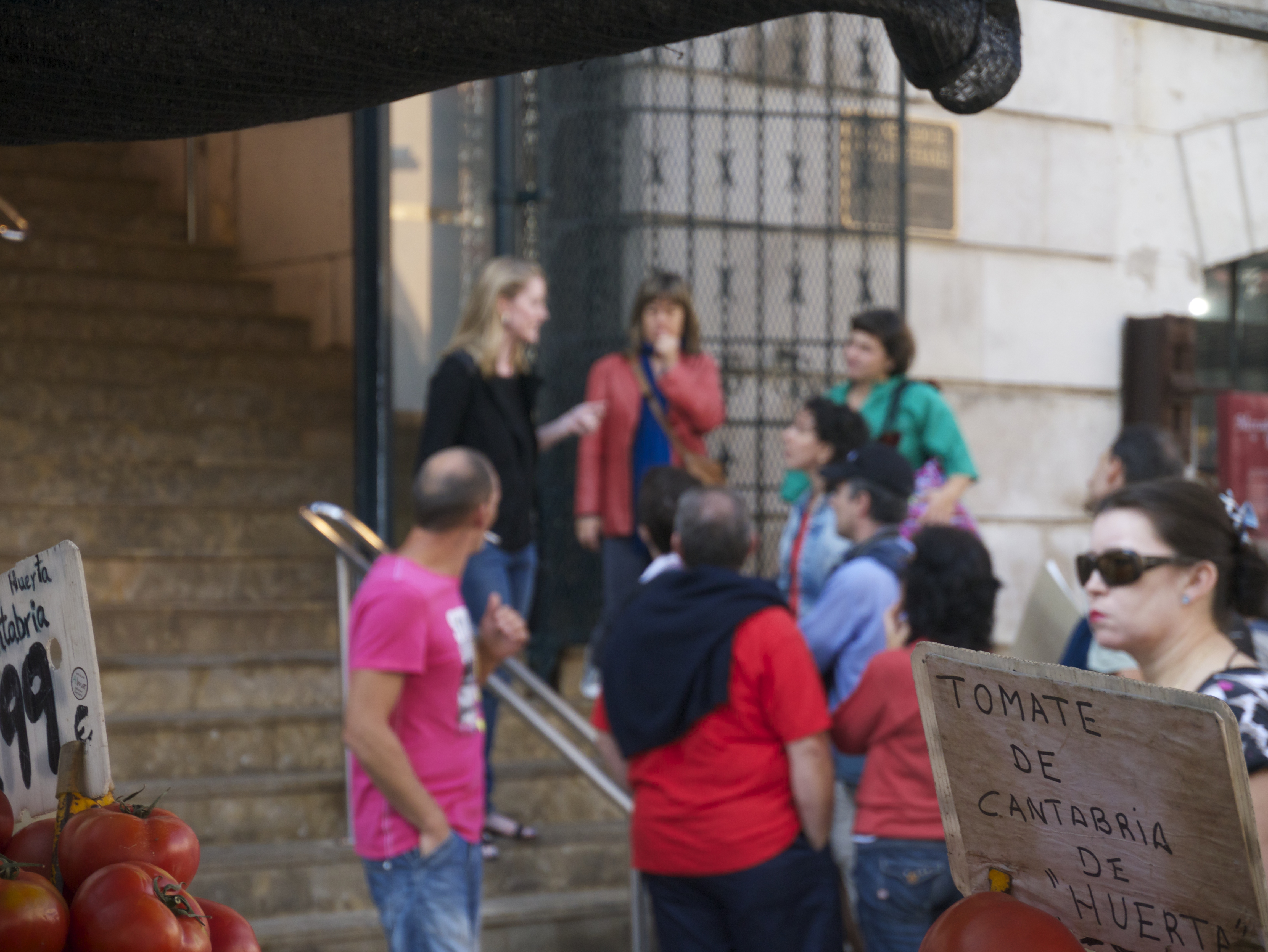 Fast forward three months and I am standing in the sunshine outside the Town Hall at 11am waiting for my Bilbao Santander Sin Cocina group. I’m in the company of Oscar who is on the Market Traders Association and Domingo, an architect, painter and all round supporter of the market. I met Oscar earlier on in the week at the press conference for the event and he and Domingo were my back-up for facts and faces in the market. Also beside me on the tour was my brother. Luckily I have a brother who is a photographer and likes the architecture in the city. Unfortunately, it was my other brother Conor who had hopped on the plane from Dublin to Santander. I threw the camera at him anyway and here’s what happened:-