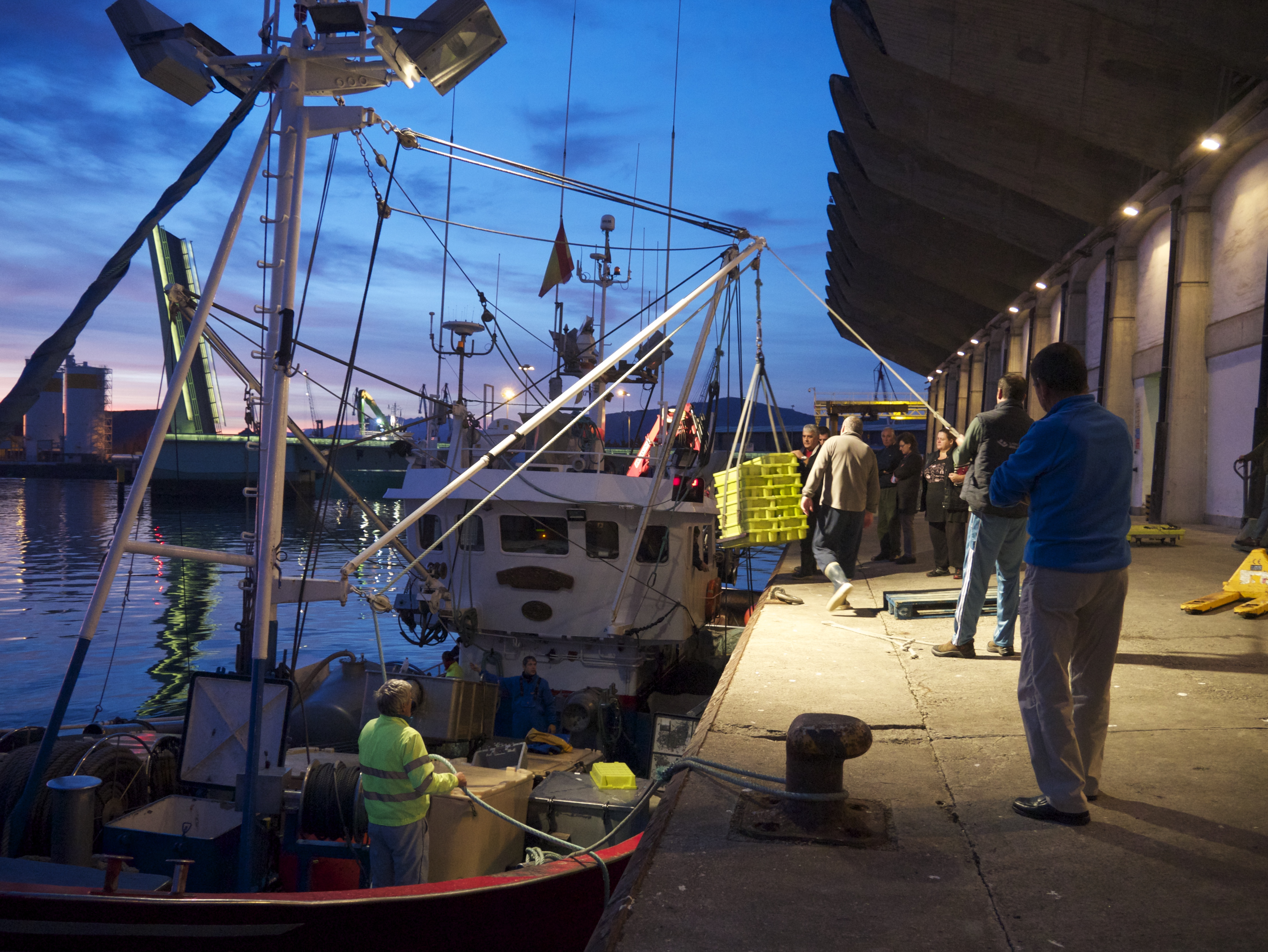 bridge New lonja fish wholesale pescado market Santander Cantabria Spain nighttime Maliano